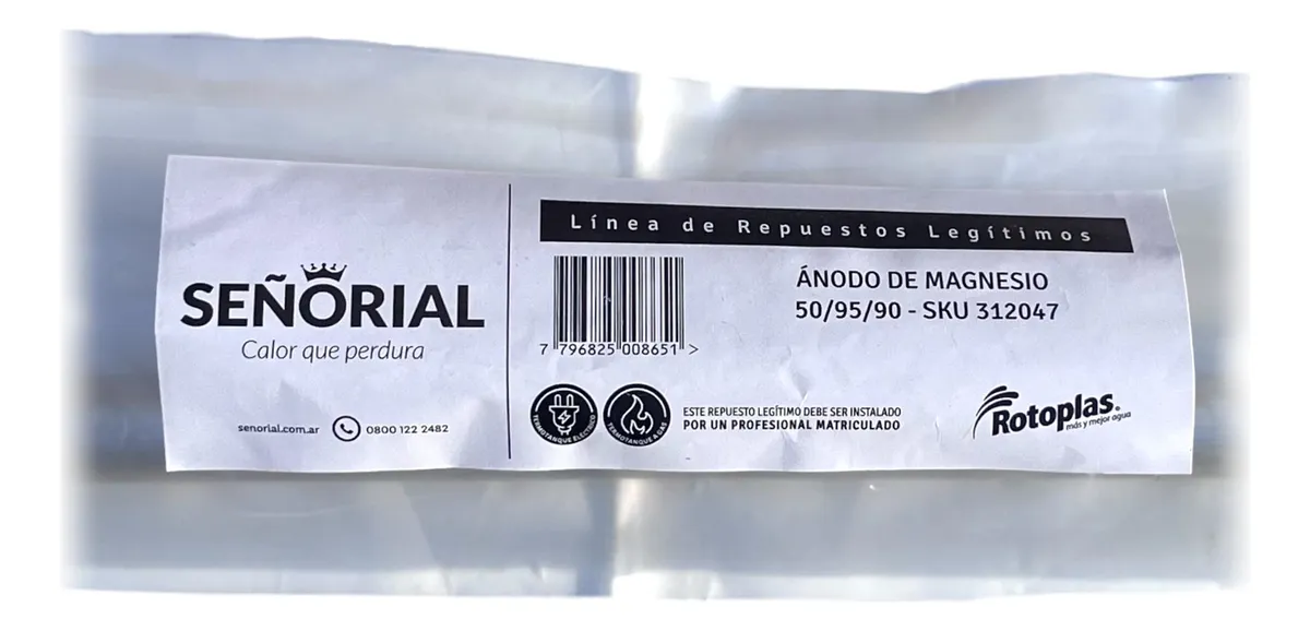 Compatible con todos los modelos de termotanques a gas y eléctricos de 50 a 95 Litros de Señorial.