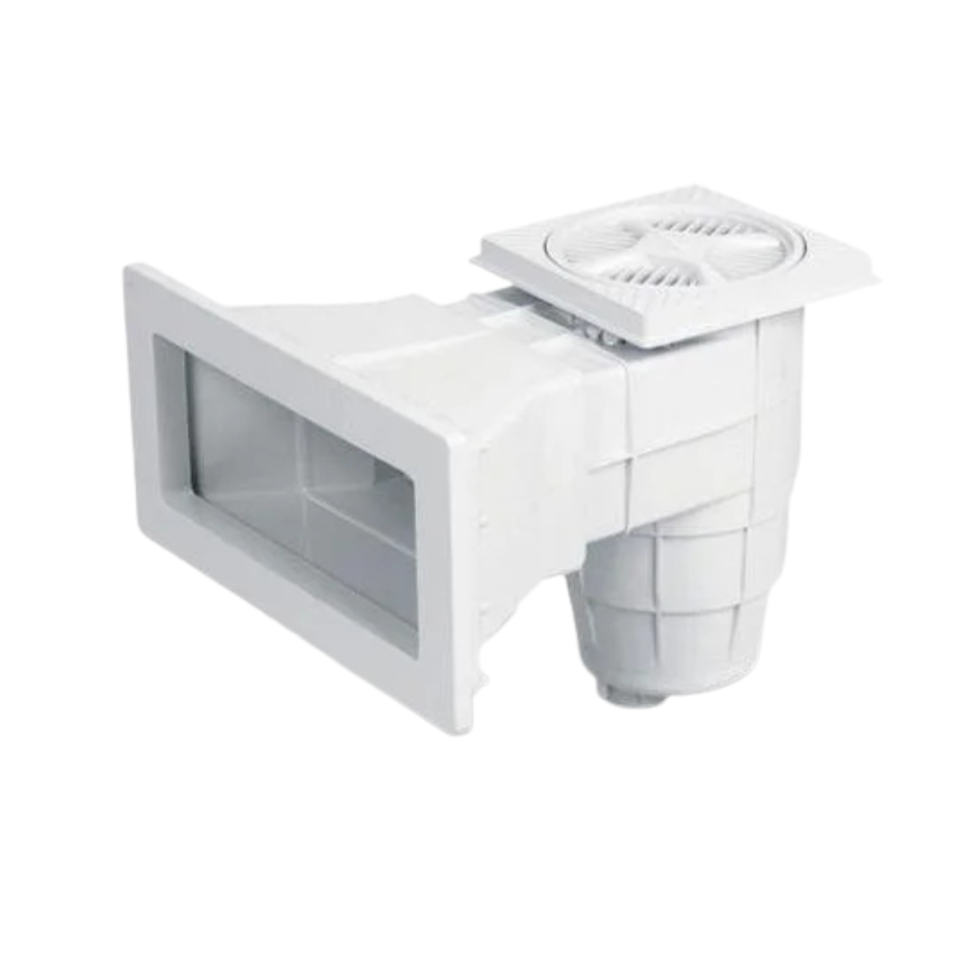 Al instalar en fibra de vidrio, asegúrese de que el marco del skimmer quede perfectamente nivelado con el borde del espejo de agua. Se recomienda el uso de sellador poliuretánico para reforzar las juntas provistas por Vulcano.
